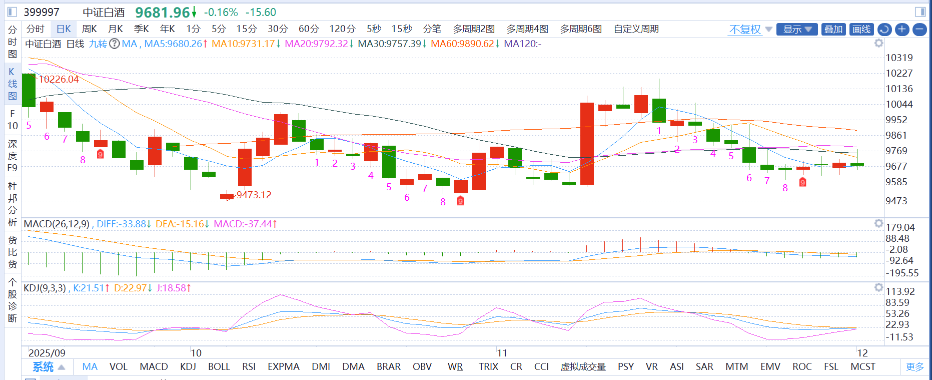 白酒板块:技术面还在震荡磨底,均线缠绕没形成明确趋势。麦爸还是保持观望,先不动!