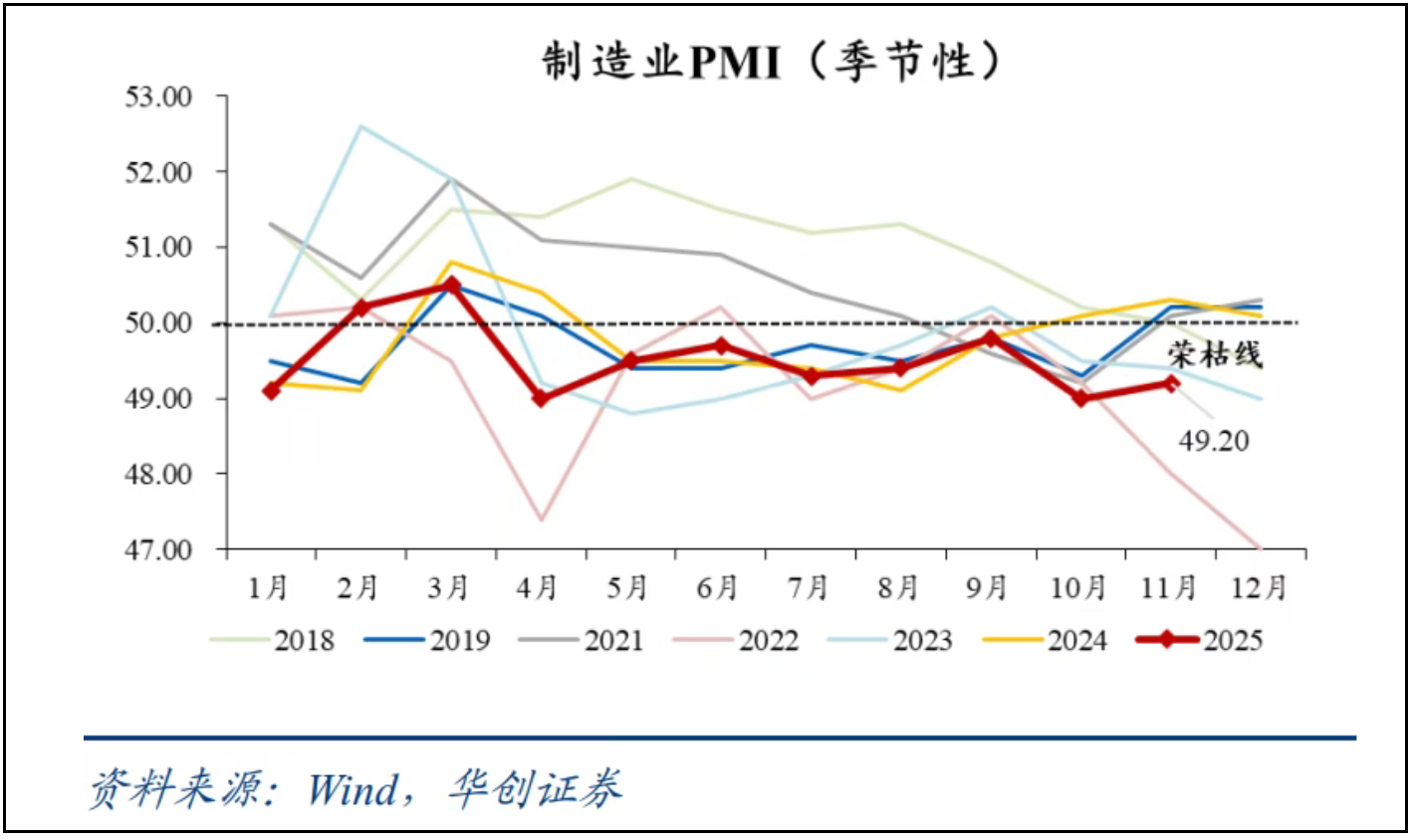 国内债市最大的新闻,是周末公布的PMI数据,下图,来自华创固收团队,官方制造业PMI49.2%,依然在荣枯线下方,环比涨0.2%,整体来看,对债市属于中性。