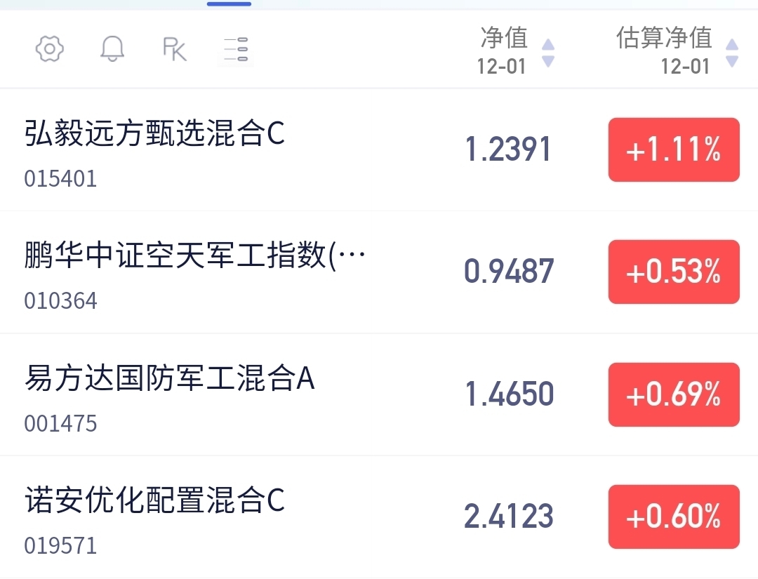 $鹏华空天军工指数(LOF)C$ $易方达国防军工混合A$ $诺安优化配置混合C$