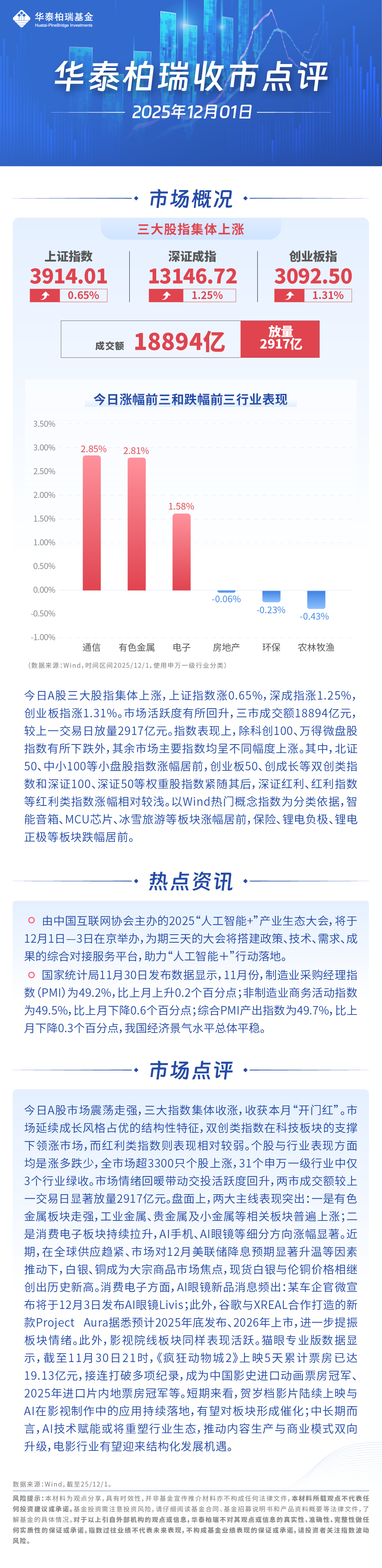 【收市点评】今日A股市场震荡走强,三大指数集体收涨,收获本月“开门红”