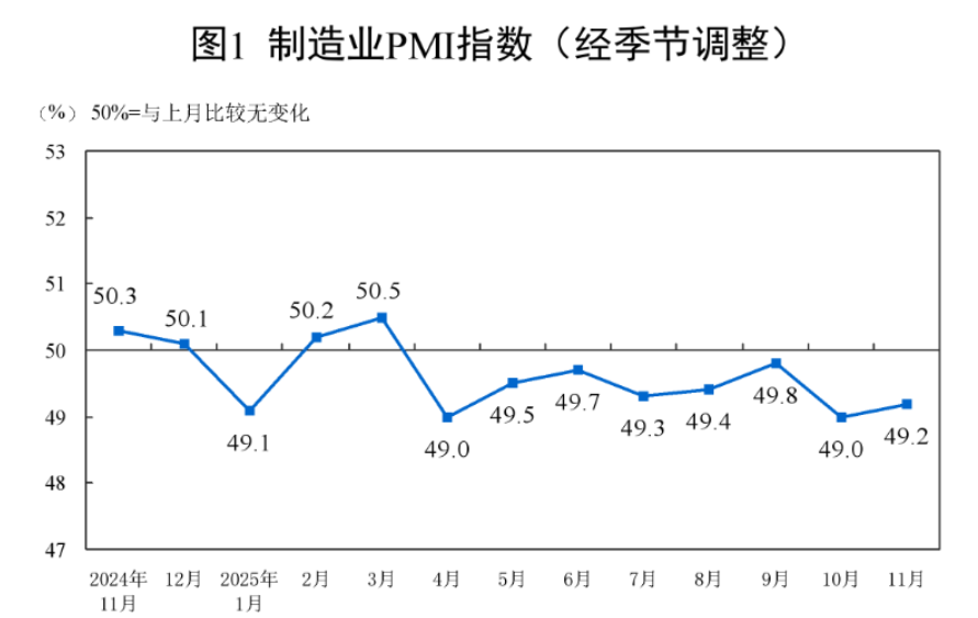 2、国家统计局发布数据显示,11月份,制造业采购经理指数(PMI)为49.2%,比环比上升0.2%。从行业来看,铁路运输、电信广播电视及卫星传输服务、货币金融服位,高于临界点,消费和房地产低于临界点。去年924行情普涨修复估值,随后上演结构性行情,也是有原因的。