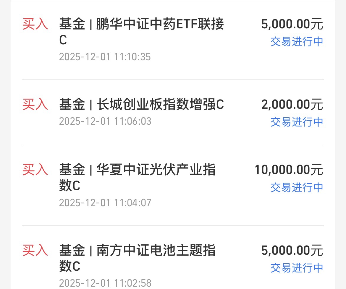 1. 光伏产业,上车10,000,$华夏中证光伏产业指数发起式C$ 今天光伏处于横盘整理,目前是跌了0.31%,从这两周来看,这一波光伏最高跌了15%,反弹修复只有4%左右,趁着筹码便宜的机会,今天我上车10,000