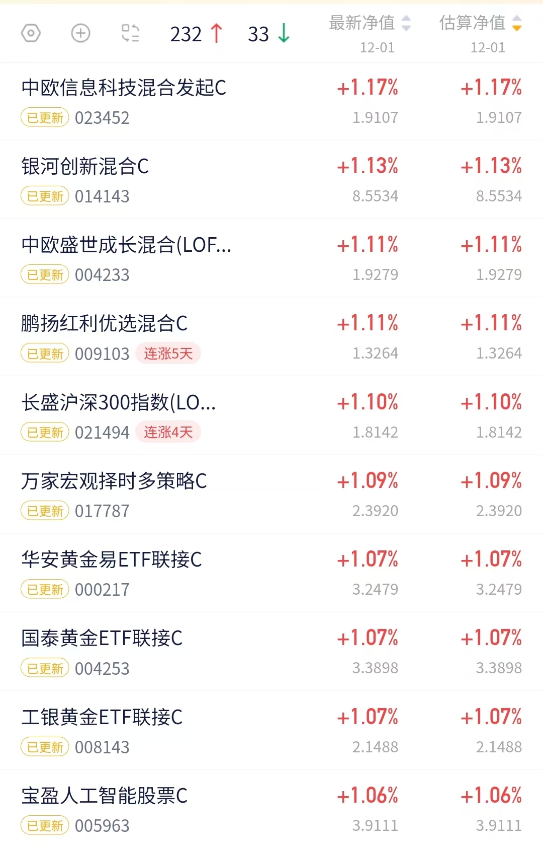 $工银黄金ETF联接C(OTCFUND|008143)$今天收涨1.07%。