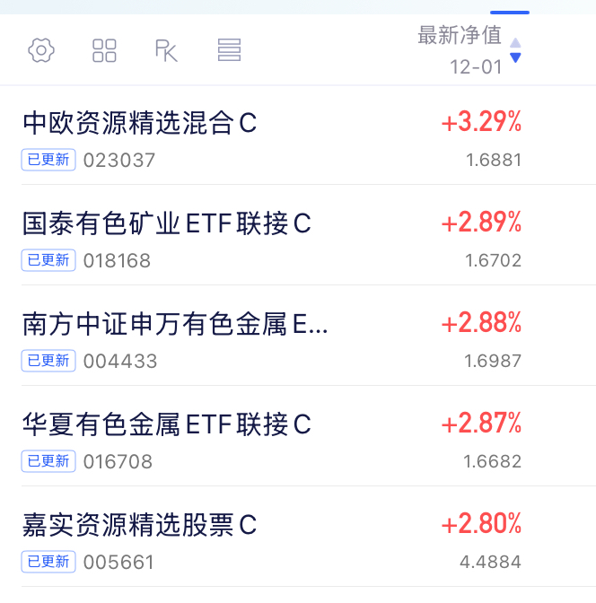 今天是12月的第一个交易日,股市再度迎来上涨行情,而有色金属板块盘中继续走强,来看相关基的净值概况吧!