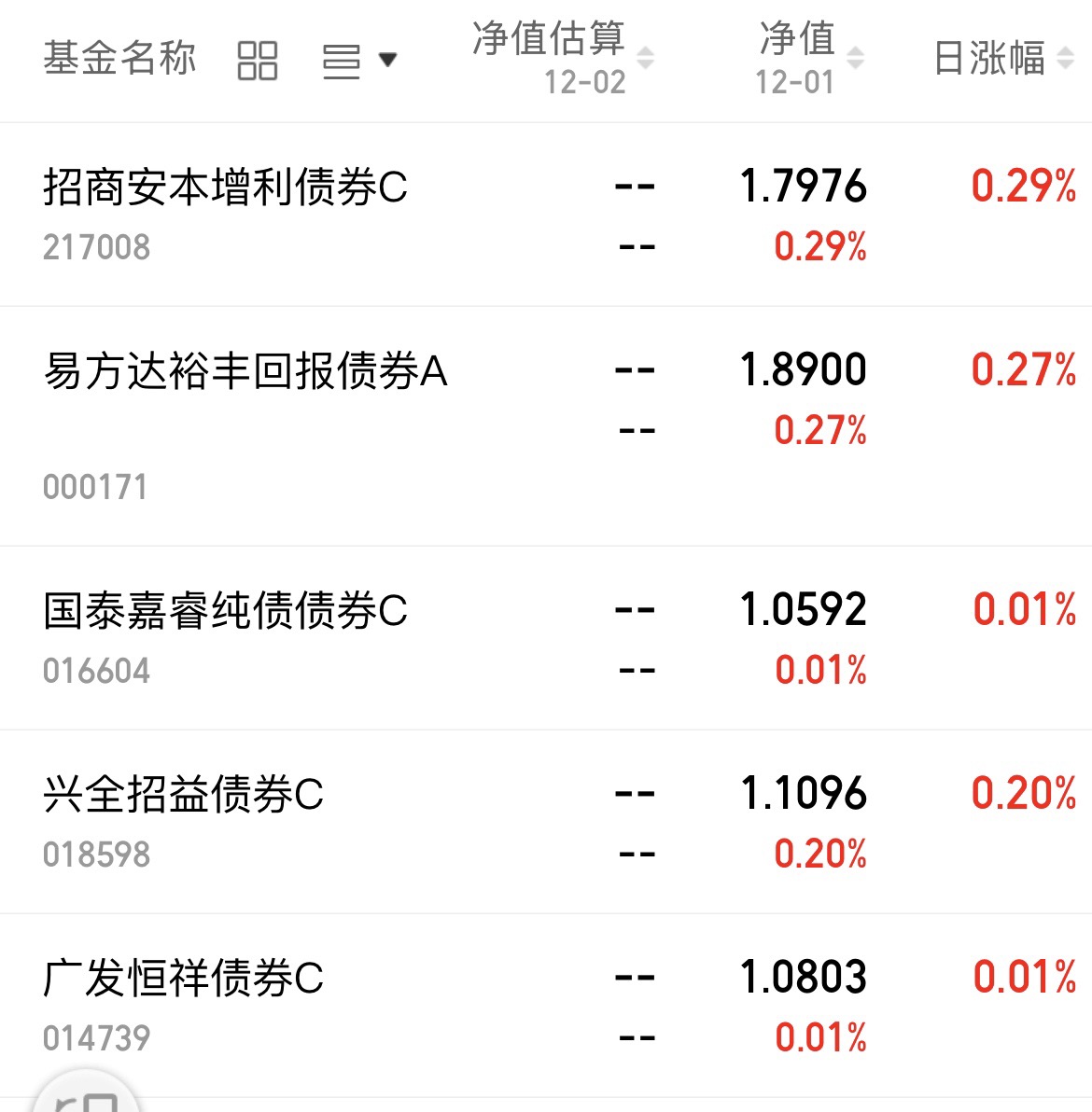 当前债券市场处于窄幅波动阶段,10年期国债收益率在1.75%~1.85%区间震荡,债市继续走弱概率较低,债券这块我也配有一些,$招商安本增利债券C$ 的收益也是可以的,昨日收29枚蛋呢,这个债券基金成立快20年了呢。