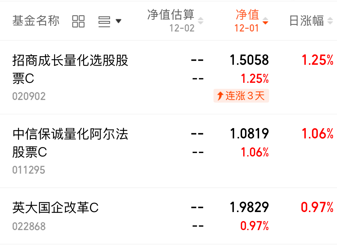 $招商成长量化选股股票C(OTCFUND|020902)$昨天涨1.25%,连红3天给力!同个基金经理之前的招商量化精选我买过,非常有实力的经理了。