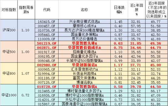 看回我们超额专区的产品们,昨日均取得了正收益。在这样的行业快切,但又缺乏相对明显主线的行情中,切记不要过于迷信可能崛起的热门炒作板块,反而依靠超额专区里的产品,能够长期稳定跑赢大盘指数,对我们资产配置的整体收益还是比较有帮助的,比如像华夏的$华夏智胜先锋股票C(OTCFUND|014198)$、$华夏智胜新锐股票C(OTCFUND|018729)$运用的是AI量化技术,避免情绪化选股;还有博时智选,量化成绩也不错;不容易踩中炒作题材的坑。