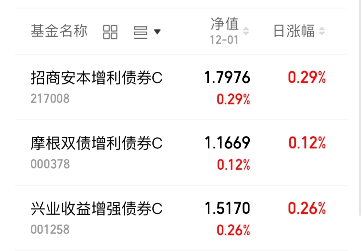今天股市有点小震荡,债市表现也各有涨跌,不过这种短期波动不会改变长期向好的趋势。最近混合债基的收益确实不错,我关注的招商安本增利债券C昨天表现挺好,一天就涨了29个点。虽然市场整体走势不太稳定,但这类产品还是保持了不错的收益能力。从近期来看,债券型基金的表现相对稳健,特别是这种混合债基,在控制风险的同时还能获得不错的回报。我持有的这只基金昨天的涨幅让我觉得挺满意的。
