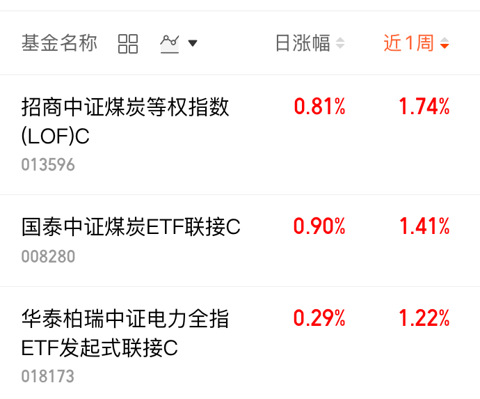 $招商中证煤炭等权指数(LOF)C(OTCFUND|013596)$近一周+1.74%
