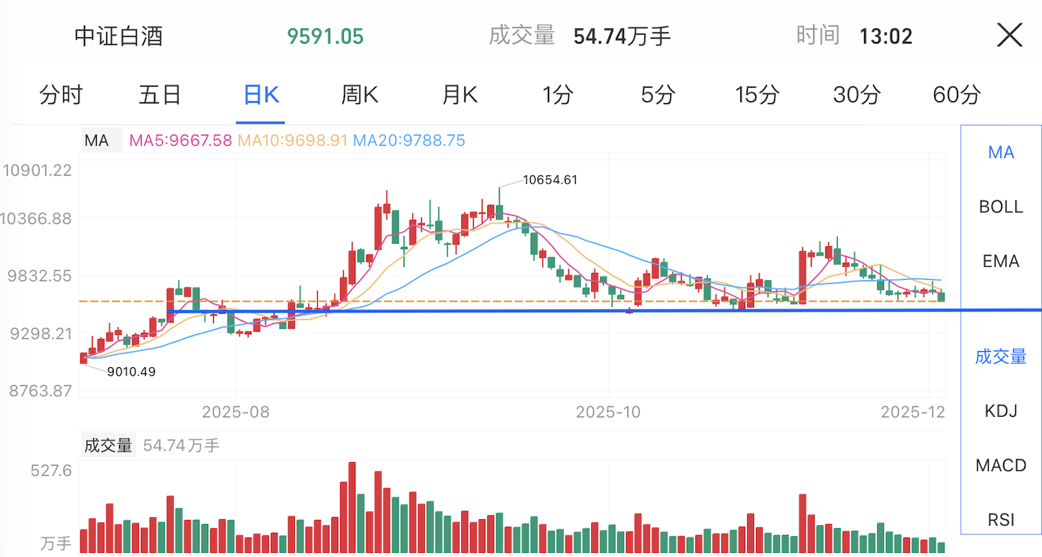 白酒板块持续在底部区间缩量震荡,缺乏强劲上涨动力。这两近支撑位,能守住支撑决定后市走向。