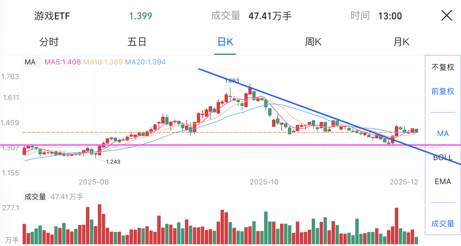 游戏板块在回调后出现反弹,最近成交量明显放大,企稳信号明确,显示机构资金有回流迹象。资金面若持续回流,反弹有望延续。这几日震荡不前,有横盘迹象。