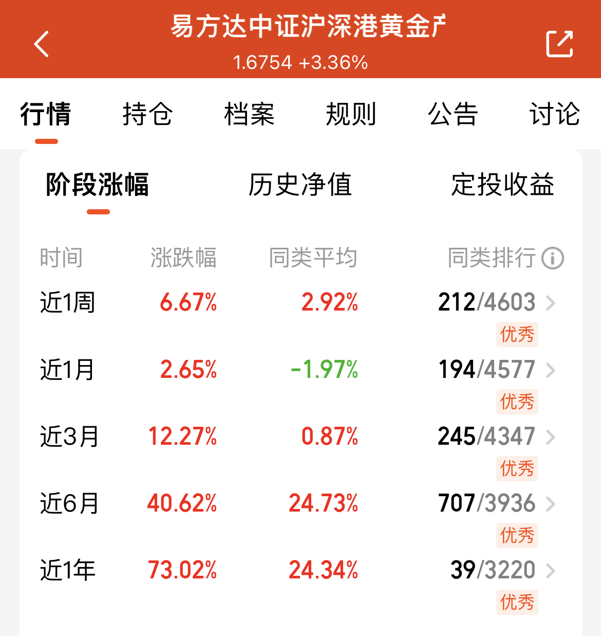 近期国内黄金股走势回暖,涨幅正慢慢跟上海外黄金股的节奏。过往行情数据显示,黄金股的上涨行情通常不会比黄金本身早结束,后续还有向上空间。虽说目前市场上有看空黄金的声音,但央行持续购金、全球去美元化的趋势没改变,这些都是支撑金价长期走稳的关键。整体逻辑扎实,当下适合加仓,我打算趁调整继续补点$易方达中证沪深港黄金产业股票指数发起式C(OTCFUND|021363)$把握后续机会。
