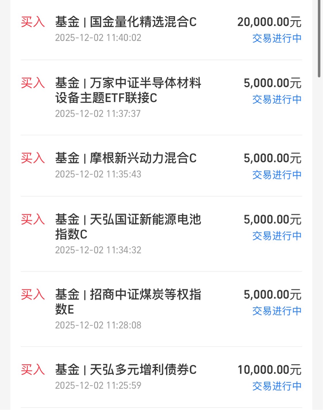 5. 半导体材料设备,上车5000,$万家中证半导体材料设备主题ETF发起式联接C$ 今天的半导体材料设备平均下跌,1.5%,前两天本身有逢低加仓,今天趁着下跌机会,降低持仓成本。