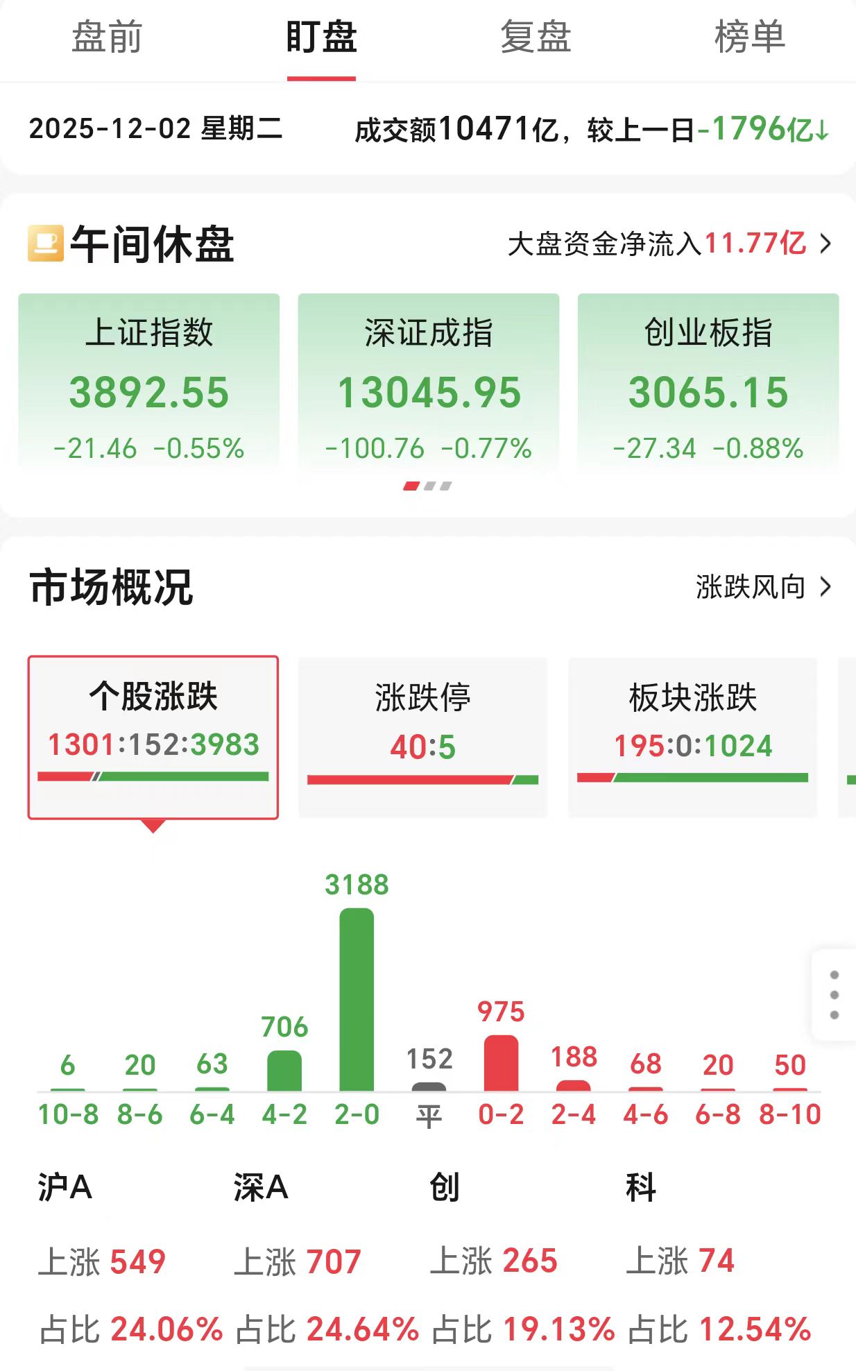 上午的行情走得磨人,三大指数全绿,超过三千只个股下跌,这感觉像是昨天刚给颗糖,今天立马收了回去,典型的“开门红”次日效应。盘面上,除了船舶、医药商业等少数板块撑场子,其余大多数都“潜水”了。成交量相比昨天也缩了不少,