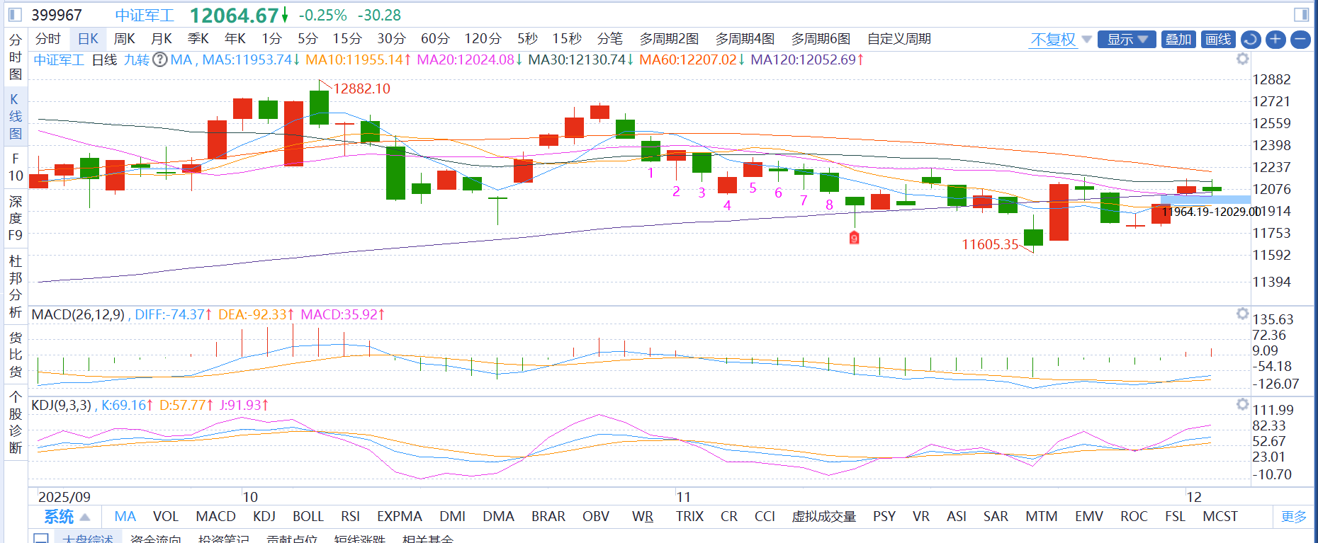 军工板块:今天虽冲高回落,但属于“仙人指路”。加上地缘紧张(DYD海域执法)+军工订单放量预期,技术面右侧趋势已经形成,周线稳步上升,麦爸选择右侧加一笔。