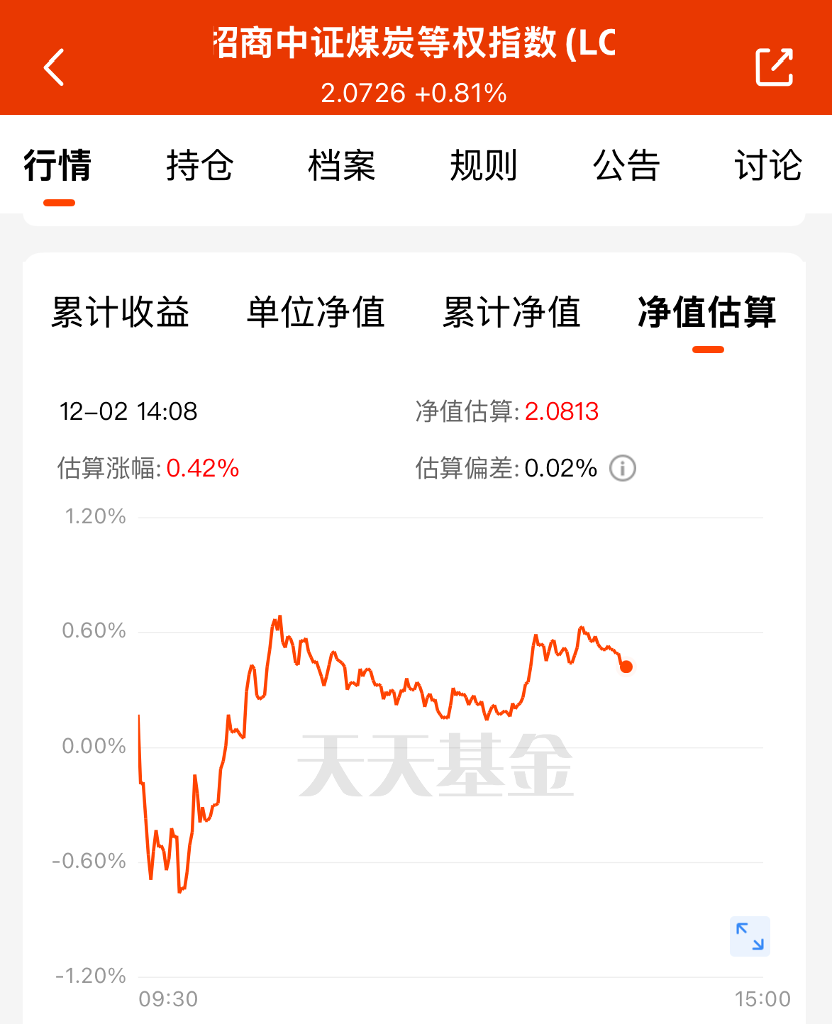 不错啊!满屏科技亏的一胡片,又到了煤炭$招商中证煤炭等权指数(LOF)C(OTCFUND|013596)$表现的时候了,目前估值+0.4%,昨天就放量了一天,量能跟不上的情况下,我觉得行情也艰难。两手配置吧现在。而且煤炭的基本面我觉得还可以,比之前强太多,继续关注。