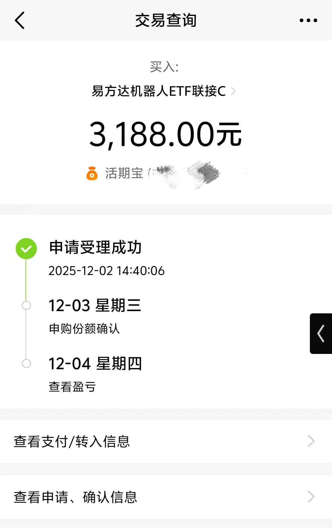 大盘今天震荡调整, 大科技板块今天回调了,机器人板块长期来看发展前景还不错,长期看好机器人板块,趁着调整今天加仓易方达机器人C3188元,这个方向后续空间还很大,我准备分批布局,慢慢积累筹码。期待之后的行情了!