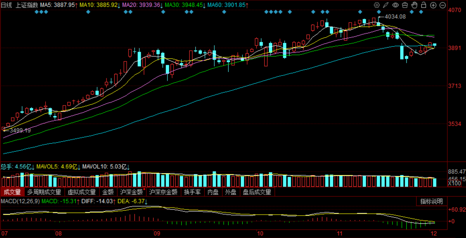 行情切换太快快快了,昨天普涨,今天就是普跌。量能方面,又回到老样子,昨天增量三千亿,今天又给还回去了,成交才1.6万亿。
