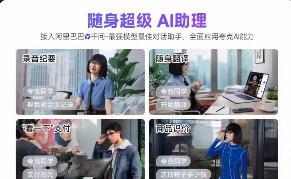 这款AI眼镜定位是“全天候多场景随身超级助理”。是阿里首个搭载千问助手的智能硬件,被市场称为真正开启AI时代人机交互革命的设备。