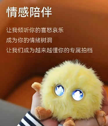 这款名为“智能憨憨”的毛绒玩具,能和用户语音对话、触摸互动,还带有专属日记记忆系统,定位为情感型“电子伙伴”。
