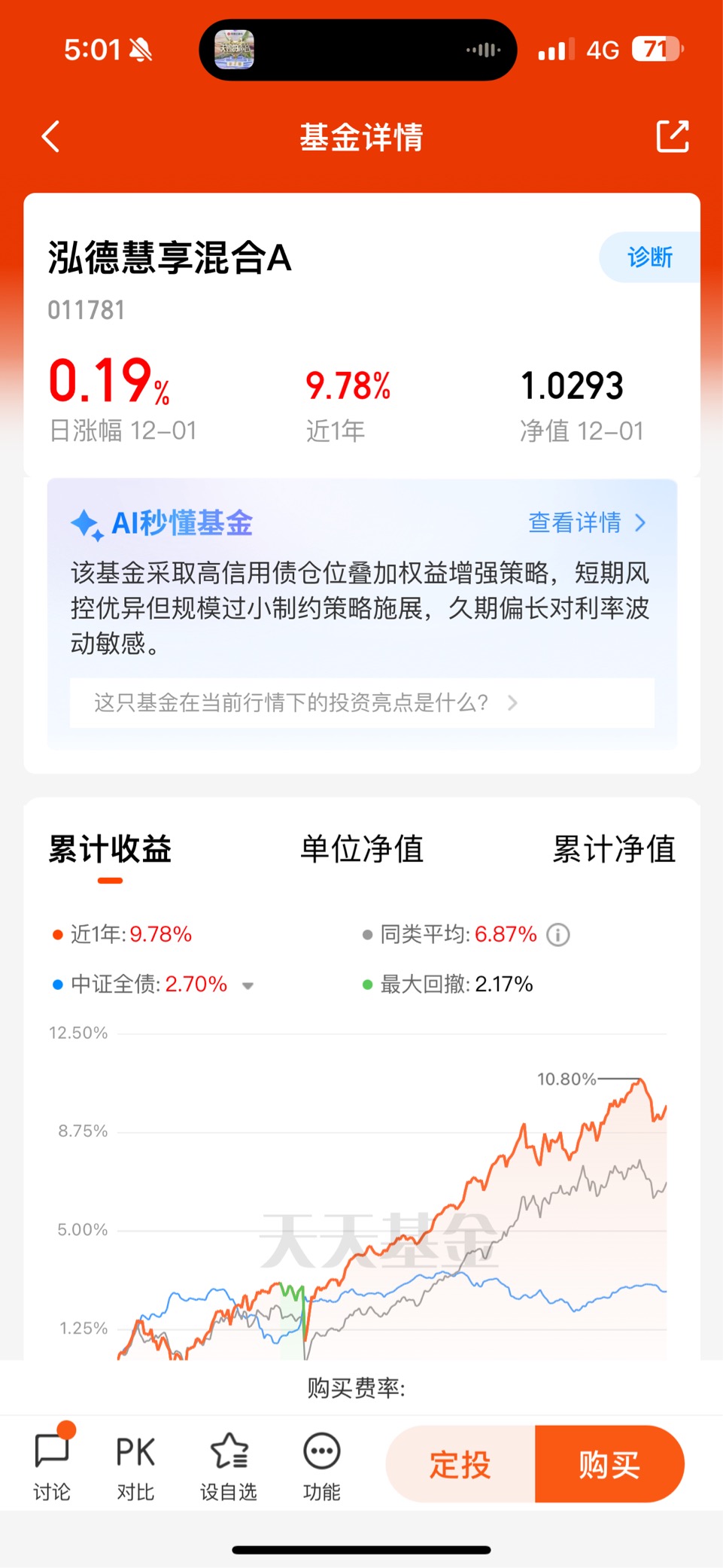 #“慧享”别样温暖# 关注泓德小波家族一段时间了,最早是在隔壁先买的裕泰替代我那低的不好意思看的银行理财,后来又买了慧享,最近看有人发帖观察到裕康已经近一年12个月连涨也不错,好像跑题了(为了表达对泓德基金很熟悉)