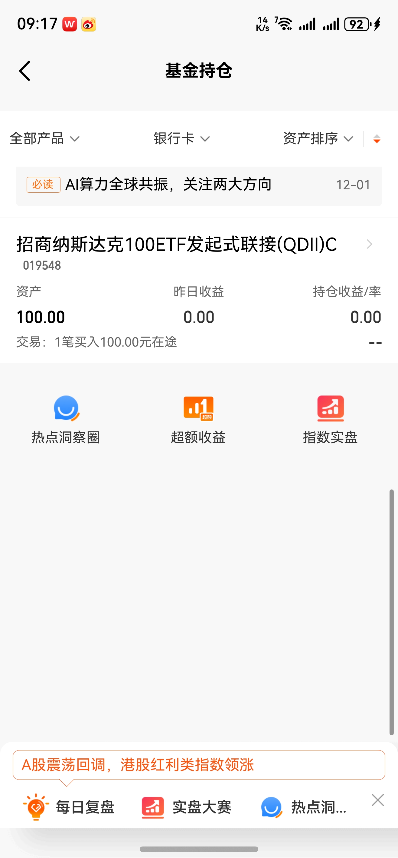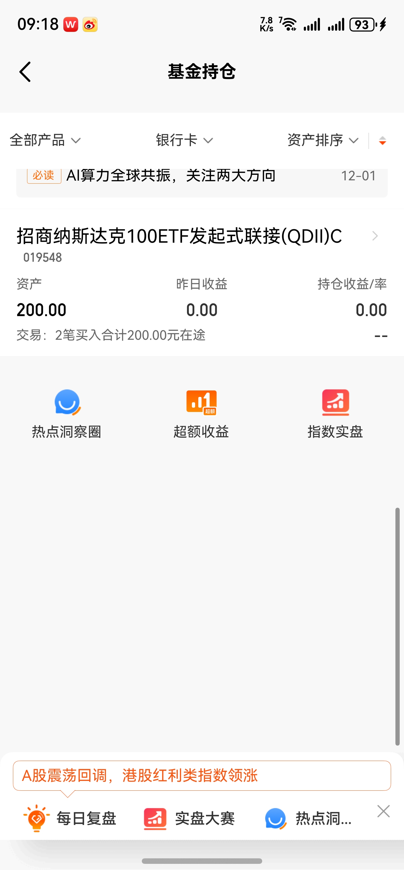 在今天,继续考虑选择在每天午加仓买100元操作。