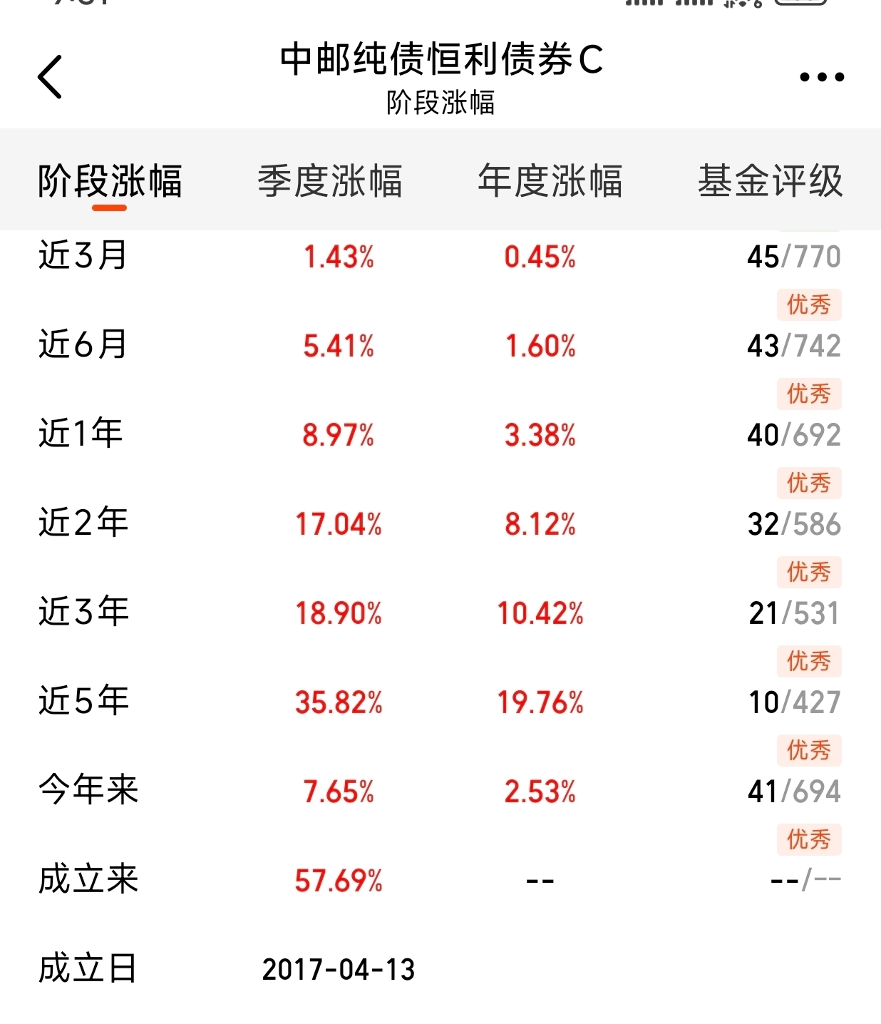 我在#2025年A股沪指收盘点位大猜想# 选择了“3800 点及以下” 股债跷跷板,债基确实应该好好表现一下了,$中邮纯债恒利债券C$ 把仓位加好,后面就等着吃肉了