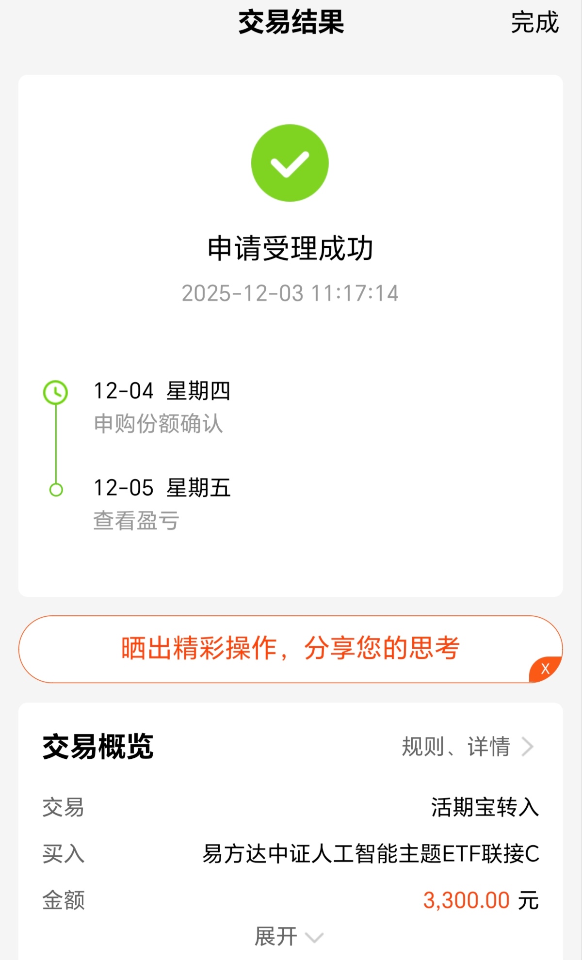 今日市场行情仍然延续震荡,人工智能板块也有所回调,但展望后市行情,无论是当下的政策持续加码,还是国内外的技术突破频现,都将会进一步推动人工智能领域发展,所以我觉得后市行情仍然可期,始终看好长期投资价值,今天果断定投起来了!