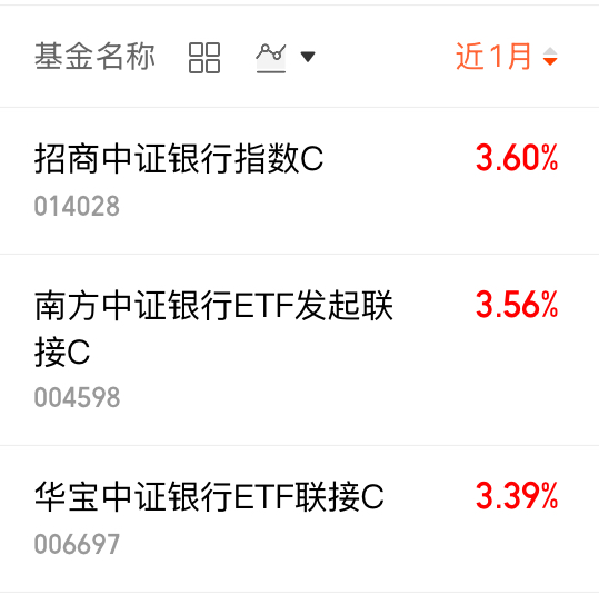 $招商中证银行指数C(OTCFUND|014028)$近一月涨3.60%