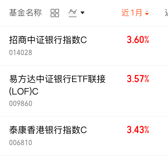 $易方达中证银行ETF联接(LOF)C(OTCFUND|009860)$近一月涨3.57%