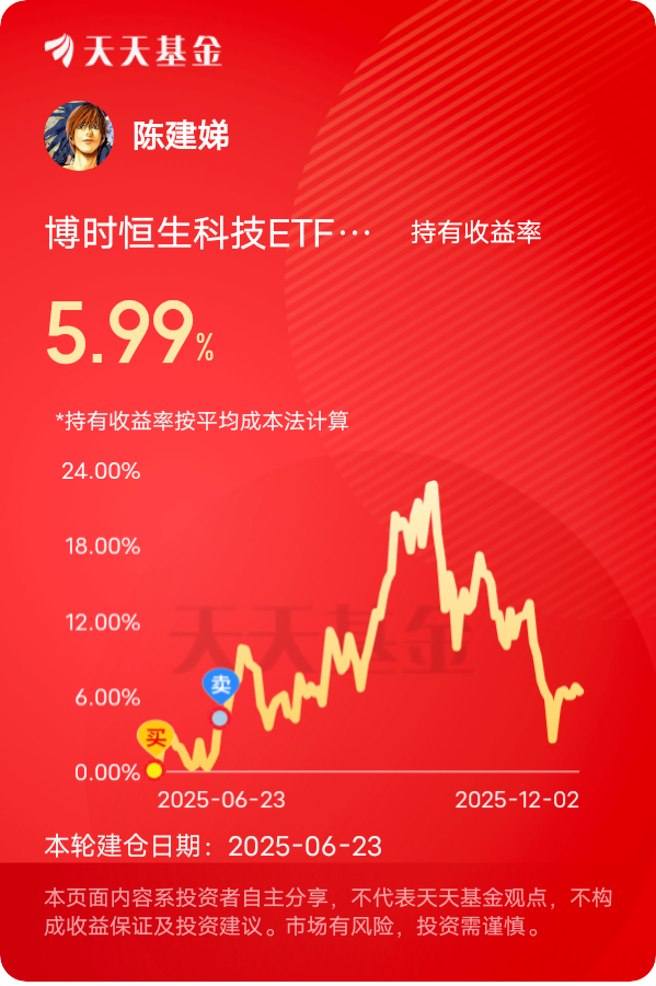 #青禾创作计划# 在我看来,面对恒生科技的短期回调,坚守并逢低布局是更明智的选择。A股港股板块轮动已成常态,回调从来不是离场信号,反而为长期投资者提供了难得的上车机会。回顾历史,港股科技的反弹弹性向来领先于多数市场,一旦情绪回暖或利好落地,往往能快速修复估值。当前更具吸引力的是,美国降息趋势持续,流动性宽松环境将为港股带来资金支撑,而恒生科技龙头们正深度受益于AI产业爆发,从算力基础设施到应用落地都在加速突破,成长逻辑愈发坚实。截至目前,恒生科技自高点已回调15%,估值压缩充分,风险收益比显著提升。对我而言,不会因短期波动轻易放弃优质资产,反而会通过分批加仓、定投等方式逐步布局,牢牢把握这波估值修复与产业成长共振的投资机会。@天天基金创作者中心 #晒收益#