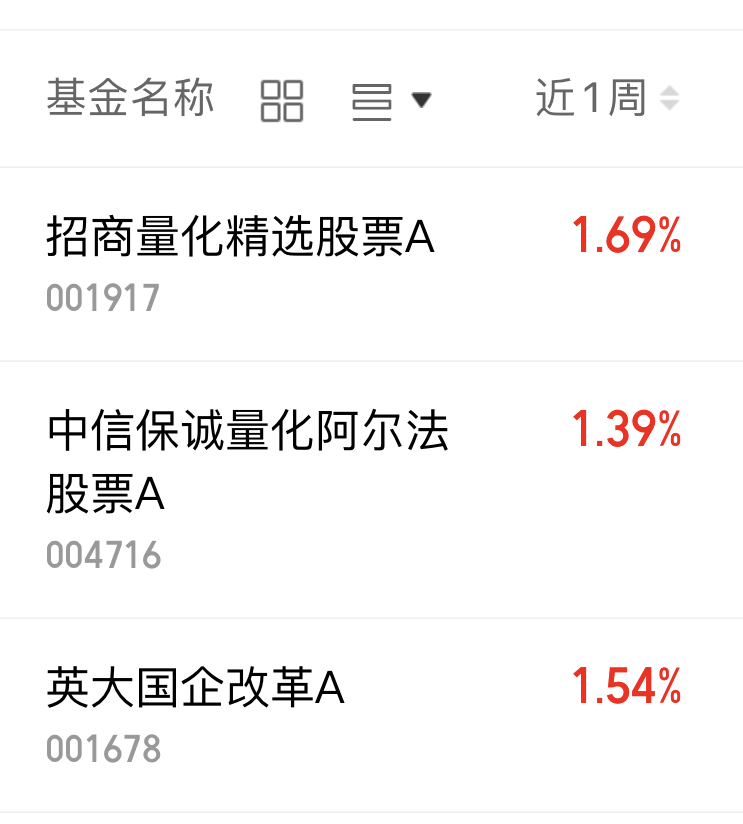 $招商量化精选股票A(OTCFUND|001917)$近一周上涨1.69%