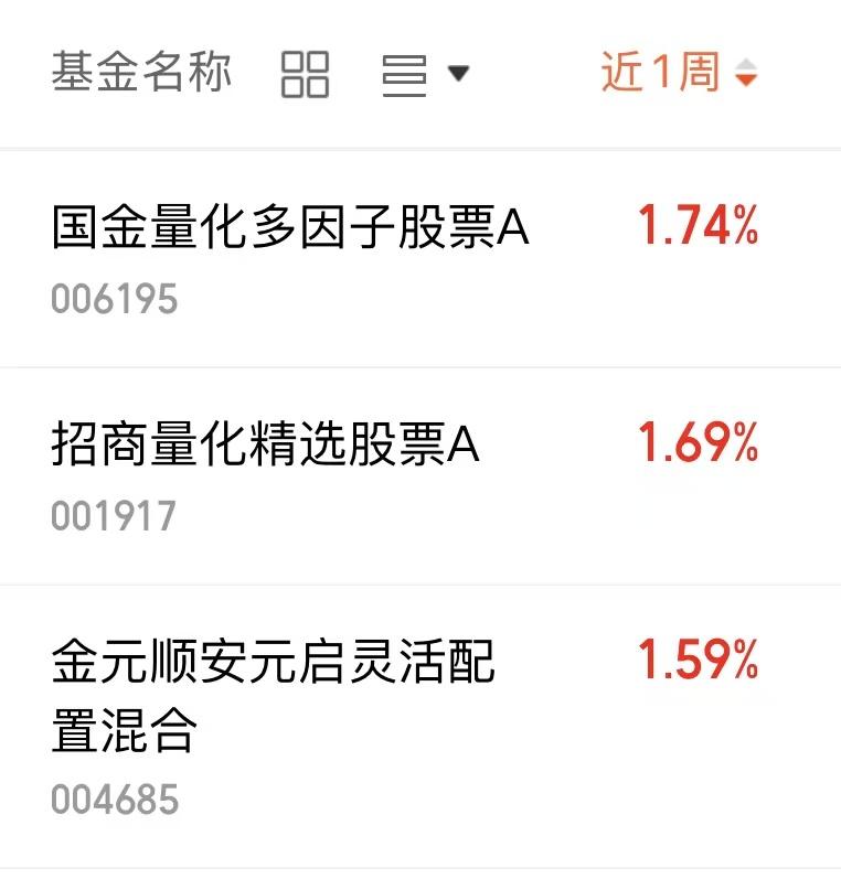 $国金量化多因子股票A(OTCFUND|006195)$近一周1.74%