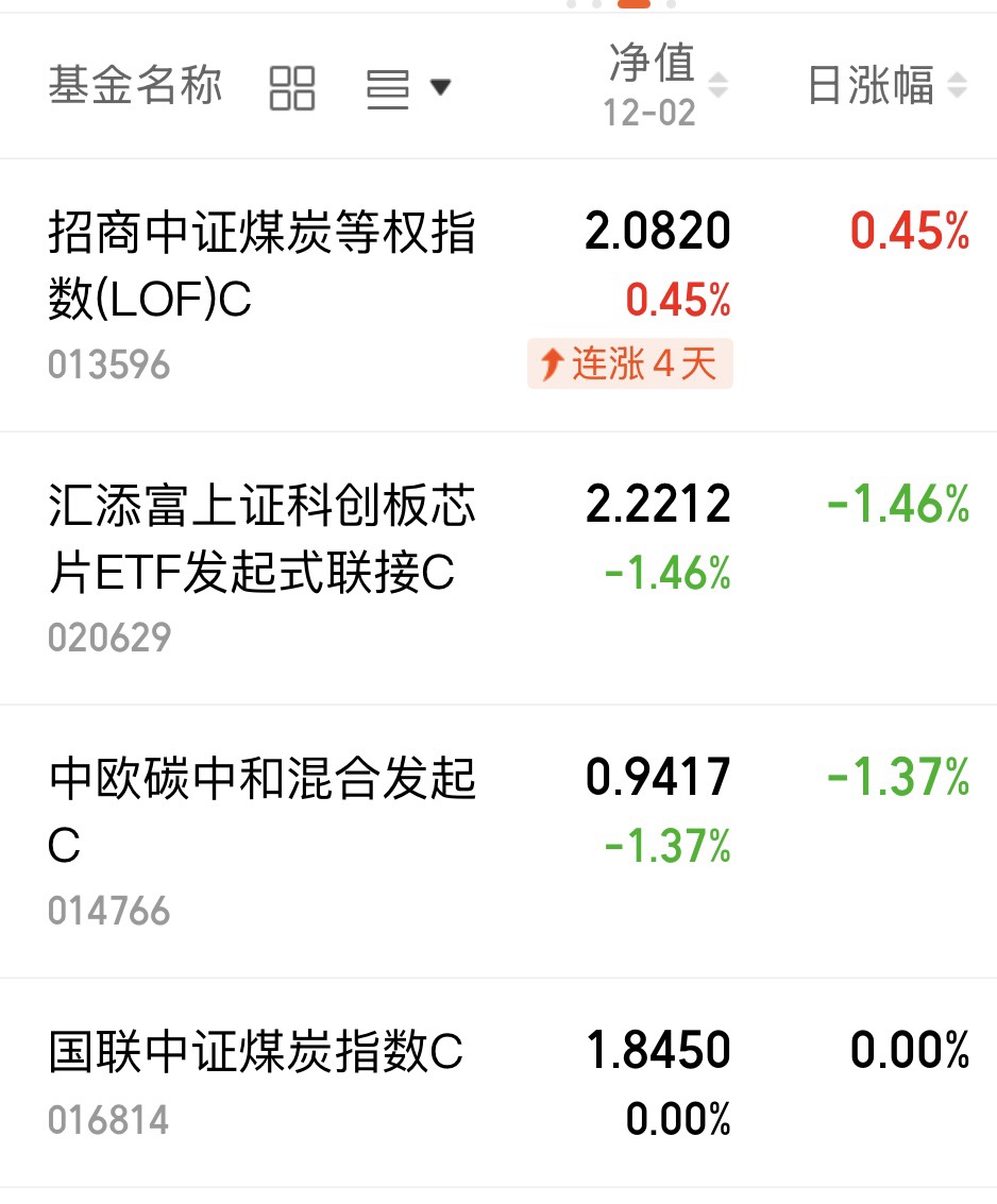 大盘从4000点上方滑下来,基本上确立了市场中期调整的基调,昨日市场普跌,持仓中也是下跌的多,但$招商中证煤炭等权指数(LOF)C$ 连涨4天,昨日又是正收益,收涨0.45%,实属惊喜。
