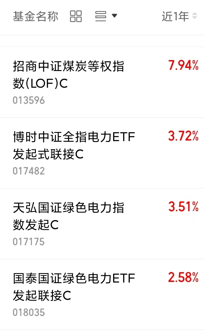 $招商中证煤炭等权指数(LOF)C(OTCFUND|013596)$近1年收涨7.94%。