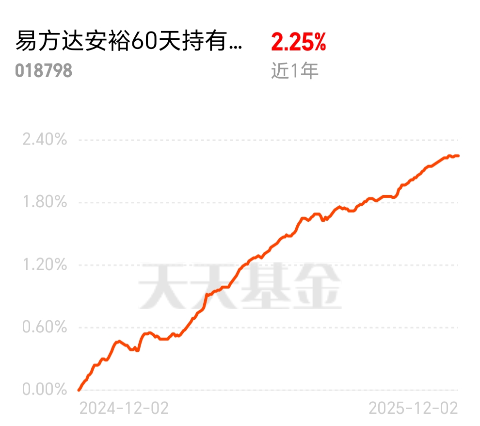 昨天股债金都是调整的状态,股市调整,债市也没起色,加上黄金和美股也调整,又吃大面了。哎,安安稳稳赚钱的时机真的是少了很多。不过幸亏我还有易方达安裕60天持有期债券A,昨晚那样的行情也都稳住没有碎蛋,把短债的防守能力表现的淋漓尽致,拉长时间看,近一年收益率达到了2.25%,跑赢余额宝和银行定存。
