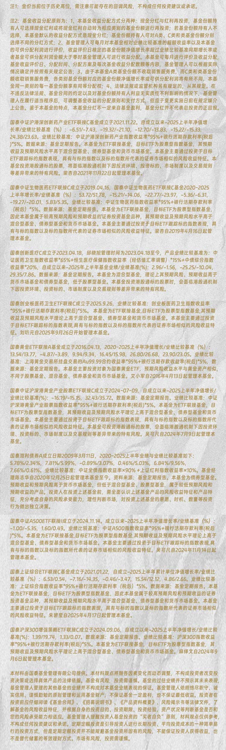 $国泰中证A500ETF发起联接A(OTCFUND|022448)$$国泰中证A500ETF发起联接C(OTCFUND|022449)$$国泰中证A500ETF发起联接I(OTCFUND|022610)$$国泰黄金ETF联接A(OTCFUND|000218)$$国泰中证沪深港黄金产业股票ETF发起联接C(OTCFUND|021674)$$国泰中证全指通信设备ETF联接C(OTCFUND|007818)$$国泰黄金ETF联接A(OTCFUND|000218)$$国泰中证沪深港黄金产业股票ETF发起联接A(OTCFUND|021673)$$国泰中证全指软件ETF联接C(OTCFUND|012637)$$国泰上证180金融ETF联接C(OTCFUND|014994)$
