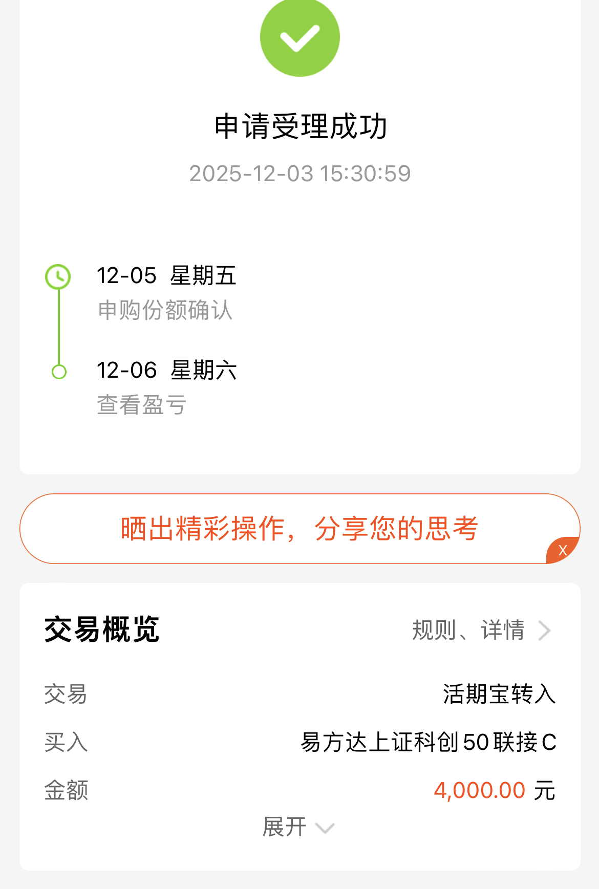 今天大盘震荡调整,三大指数集体收跌,不少板块调整,但科创板50没受啥影响,还是成长资金盯着的方向。政策一直给它站台,产业端利好也没断,再加上现在资金面宽松,长期投资的底气很足。这波回调刚好是捡筹码的机会,我准备定投加仓了,震荡里分批布局能平摊成本,等科创赛道后续借着政策和产业东风起来,收益肯定不会差~