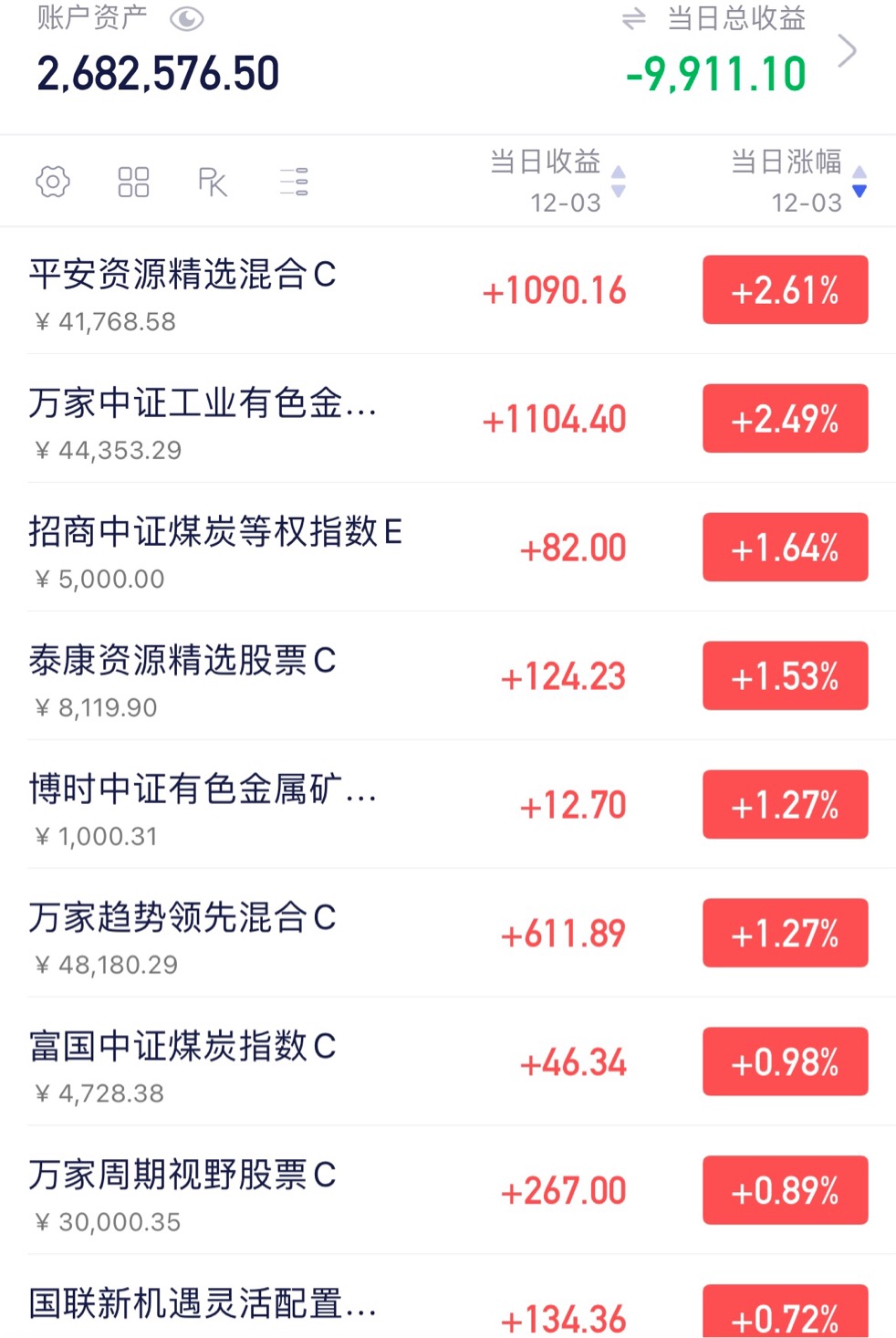 3. 资源精选,上车10,000,$平安资源精选混合发起式C$ 一边,科技成长回调,一边是防御性资产持续走强,资源板块、煤炭板块、有色金属等细分领域表现活跃,个人认为,整个十二月份资源板块机会很大