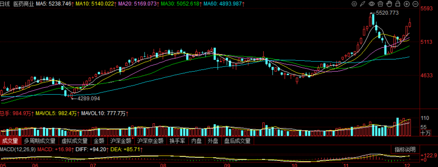 医药商业板块上涨核心原因还是,中国疾病预防控制中心发布数据显示,在全国门急诊流感样病例中,流感阳性率接近45%,呈快速上升趋势。市场对药物的需求提升,短期业绩也就是水涨船高,资金在提前布局或持续炒作预期。