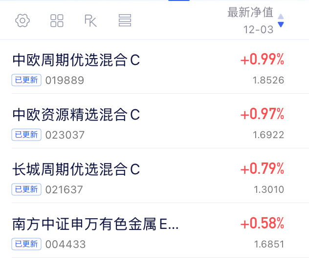 有色资源相关基净值播报