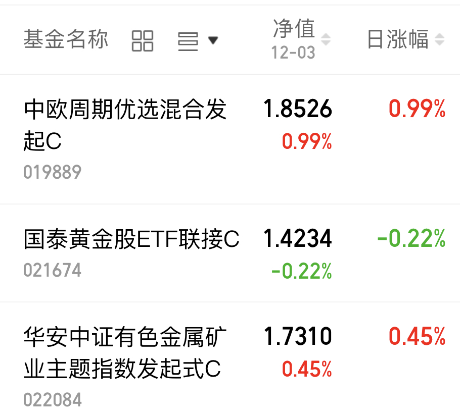 今天大盘延续震荡走势,三大指数都下跌了,市场超3800只个股下跌,不少板块调整,不过有色金属板块表现不错,实现逆势上涨,一起来看净值情况。