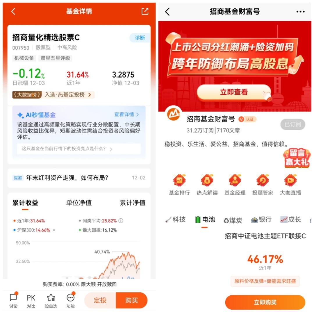 综上,木瓜认为招商量化精选股票基金的核心优势在于其科学迭代的策略体系、长期领先的收益表现、精细化的风险控制与专业稳健的管理运作。在量化投资成为市场主流配置方向的背景下,该基金凭借“低估值、高盈利、高质量”的选股逻辑,以及对市场变化的快速适配能力,持续为投资者创造价值,成为量化领域兼具标杆性与配置价值的优质产品。@招商基金