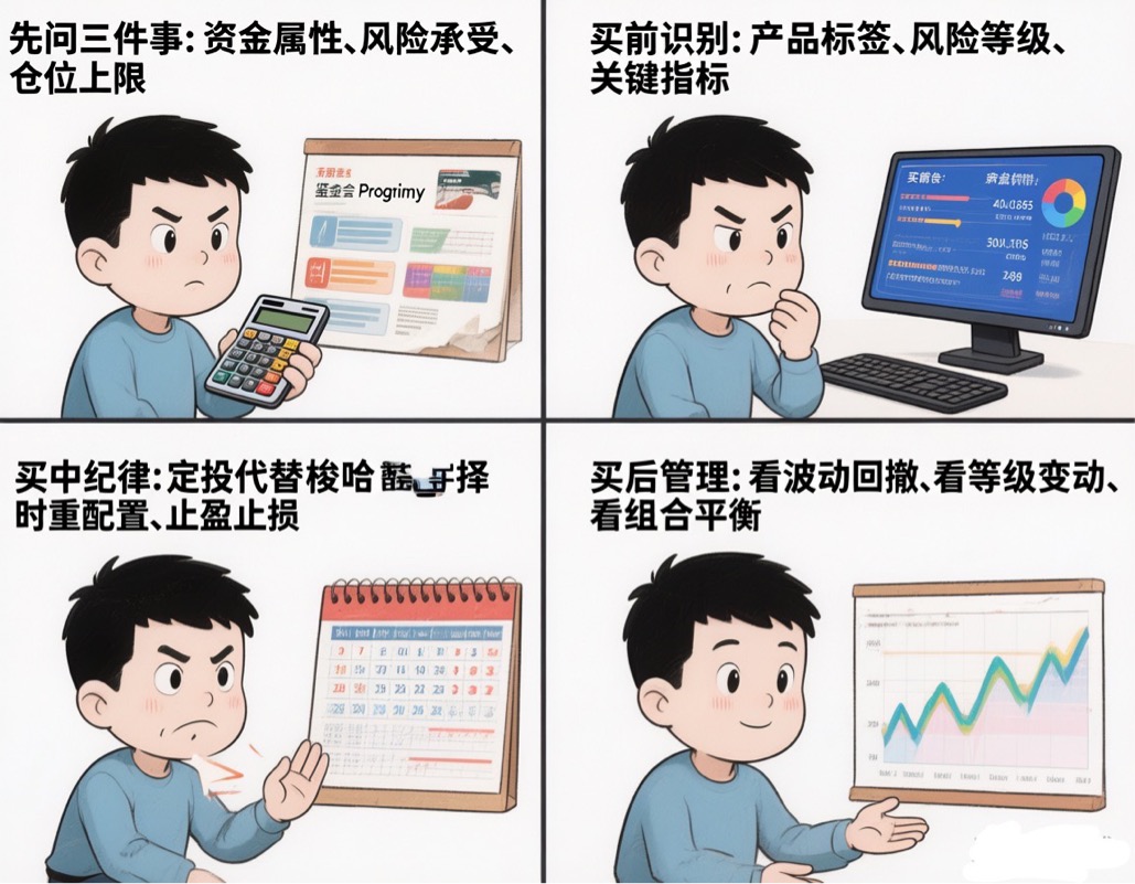• 轻择时、重配置:少盯盘、少追热点,按计划分批进出;行业轮动快,切忌把基金当股票短炒,手续费与情绪都会“磨损”收益。