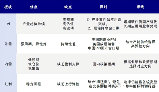2、对于大盘方向,我们保持中性态度。目前我们处于新旧动能切换的宏观状态,经济呈现“K”型分化走势,普涨条件尚不具备。目前具备景气度的方向有三个,科技(AI革命+政策支持+海外映射),上游反内卷(光伏、锂电等),出口(全球制造业复苏,海外积极财政预期)。从方向上看,前两者景气仍在上行,但也存在前期涨幅较大,波动较大的风险;而全球制造业相关板块或许存在机会,可关注$国泰国证有色金属行业指数(LOF)C(OTCFUND|015596)$$国泰有色矿业ETF联接C(OTCFUND|018168)$等。此外,作为对冲项,推荐关注$国泰富时现金流ETF联接C(OTCFUND|023920)$、$国泰上证国企红利ETF联接C(OTCFUND|021702)$。