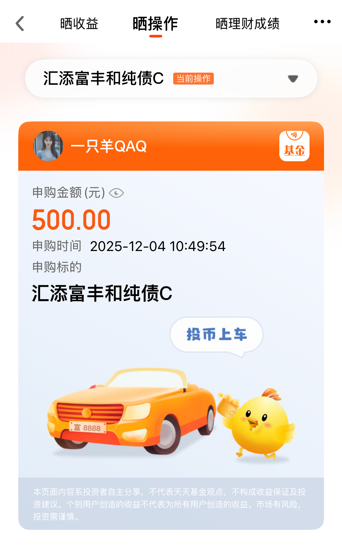 我个人认为,短期可能会有反弹行情,埋伏超长债博弈波段。$汇添富丰和纯债C(OTCFUND|017460)$30年超长利率债策略,应该是市面上久期最长的了,策略很稳定,债基里的大长腿,华子那边我就不管了,放着把先。