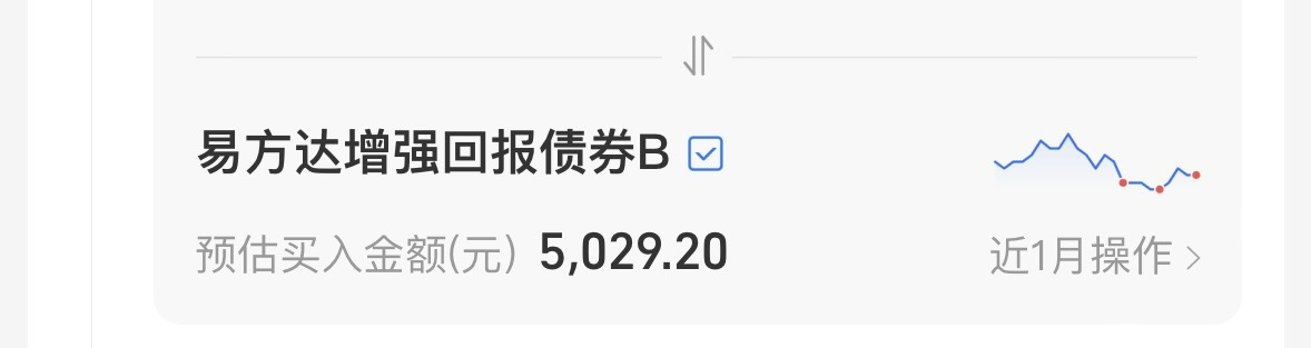 $易方达增强回报债券B$ +5000,股债切换速度快,股债切换速度快,投资单一资产赚钱效应差,固收+持仓更均衡,比较适合当下的行情。今天再补一笔易方达增强回报,这支属于中低波固收+,持仓大头在纯债,权益占比13.94%,可转债占比6.99%,持仓比较均衡,避免单一资产带来波动。主债少股,行情好权益发力上涨动力足,遇到回调纯债提供债底保护有效平滑波动,进可攻退可守。