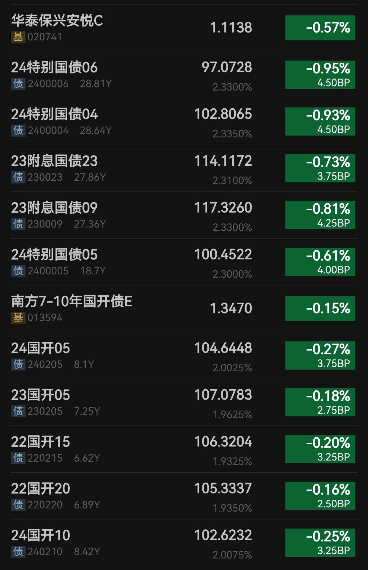 今作思路及估值:截止上午收盘,上证指数勉强收红,科创板和创业板涨的稍微多一些,整体市场还局部上涨,股市上涨后债市开启加速下跌模式,今天跌幅较大,华泰和丰和都是大幅丢蛋。债市作为稳健理财方向能跌成这样,也真是比较弱了。不过今天跌幅较大按说是补仓时机,但是还是要看情况,今天30年期国债期货没有收出长下影如果尾盘是个实体阴线,明天可能还会继续跳空下跌,所以还是继续布局防御品种。今天我上车三支基金。都是能涨抗跌的品种。希望能对冲超长债的回撤。