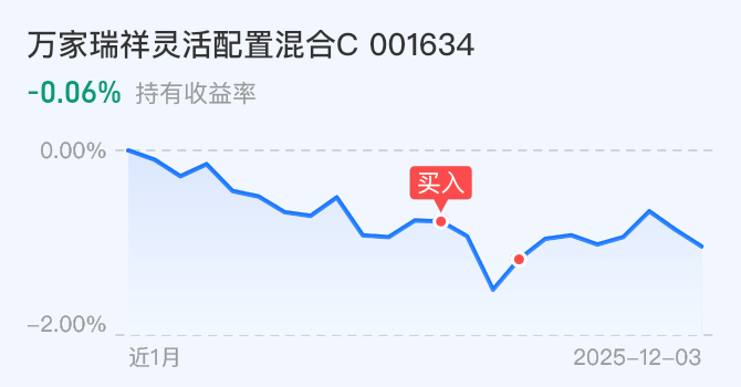我加$万家瑞祥混合C(OTCFUND|001634)$+1万,经过两天的市场调整终于到了逢低加仓时机,昨天在股债两市同时出现调整的情况下仅出现小幅回撤。这支固收+属于低波稳健型基金,不会大起大落只会小幅震荡上涨。而且遇到调整修复速度快,取得了近六个月涨幅6.43%的超额收益,在同类基金中排名居前。收益稳健是因为以信用债为底仓,附加少量利率债做收益增强,股票部分占比两成仓位,是由多个板块龙头股组成,都是弹性非常不错的股票。基金经理苏谋东先生擅长大资产配置,严控风险的基础上追求更高的投资回报,趁刚调整完毕我今天再上车一万元。