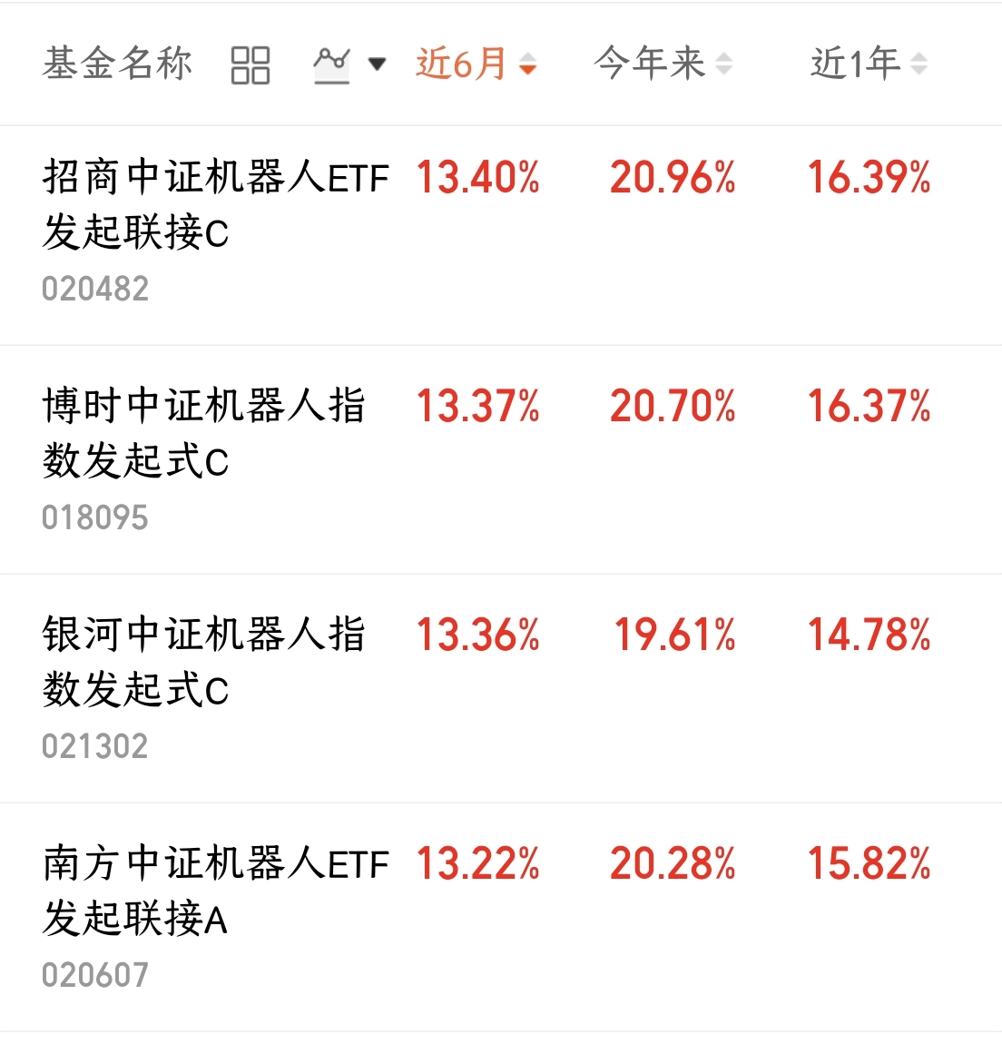 $招商中证机器人ETF发起联接C(OTCFUND|020482)$近半年涨幅13.4%